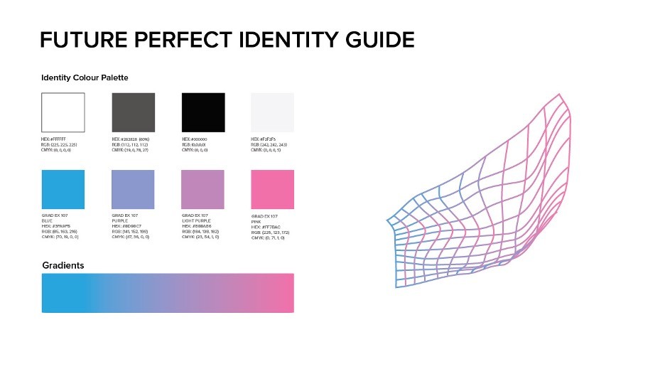 Future Perfect encapsulates the essence of our year and our hopes. Below are a few of the final pages from our identity guide.