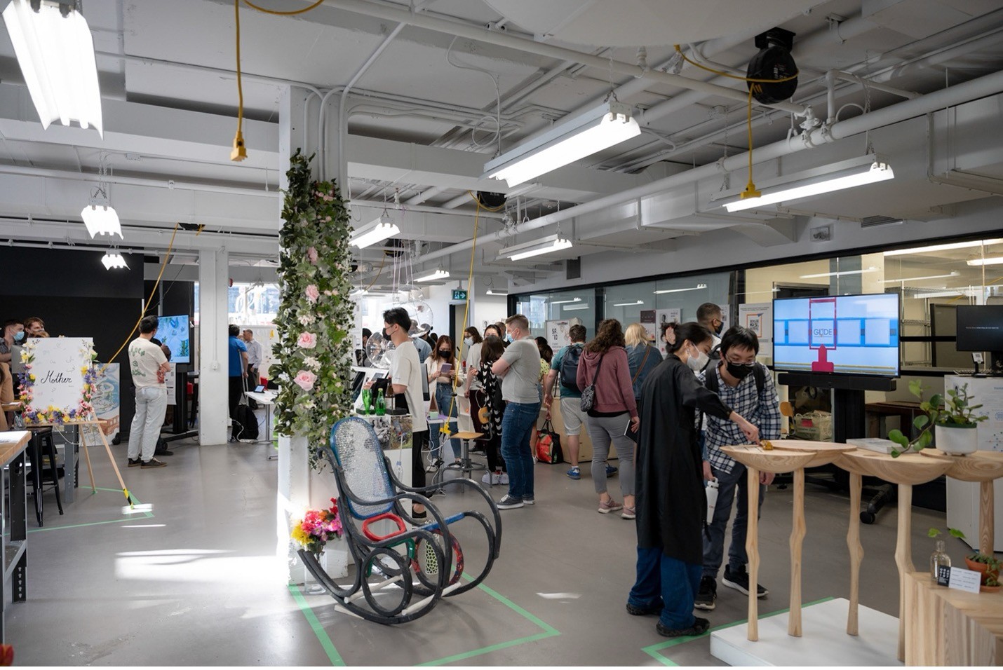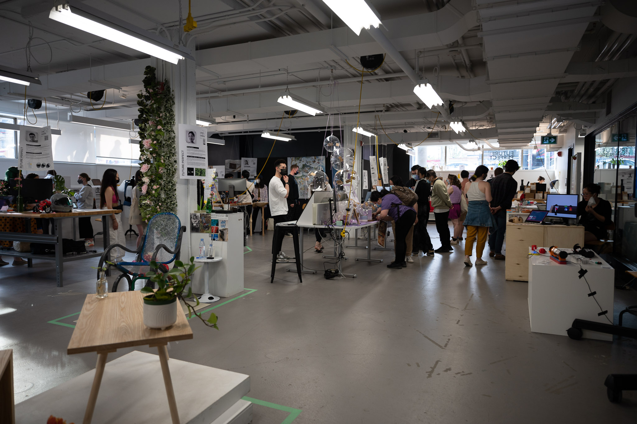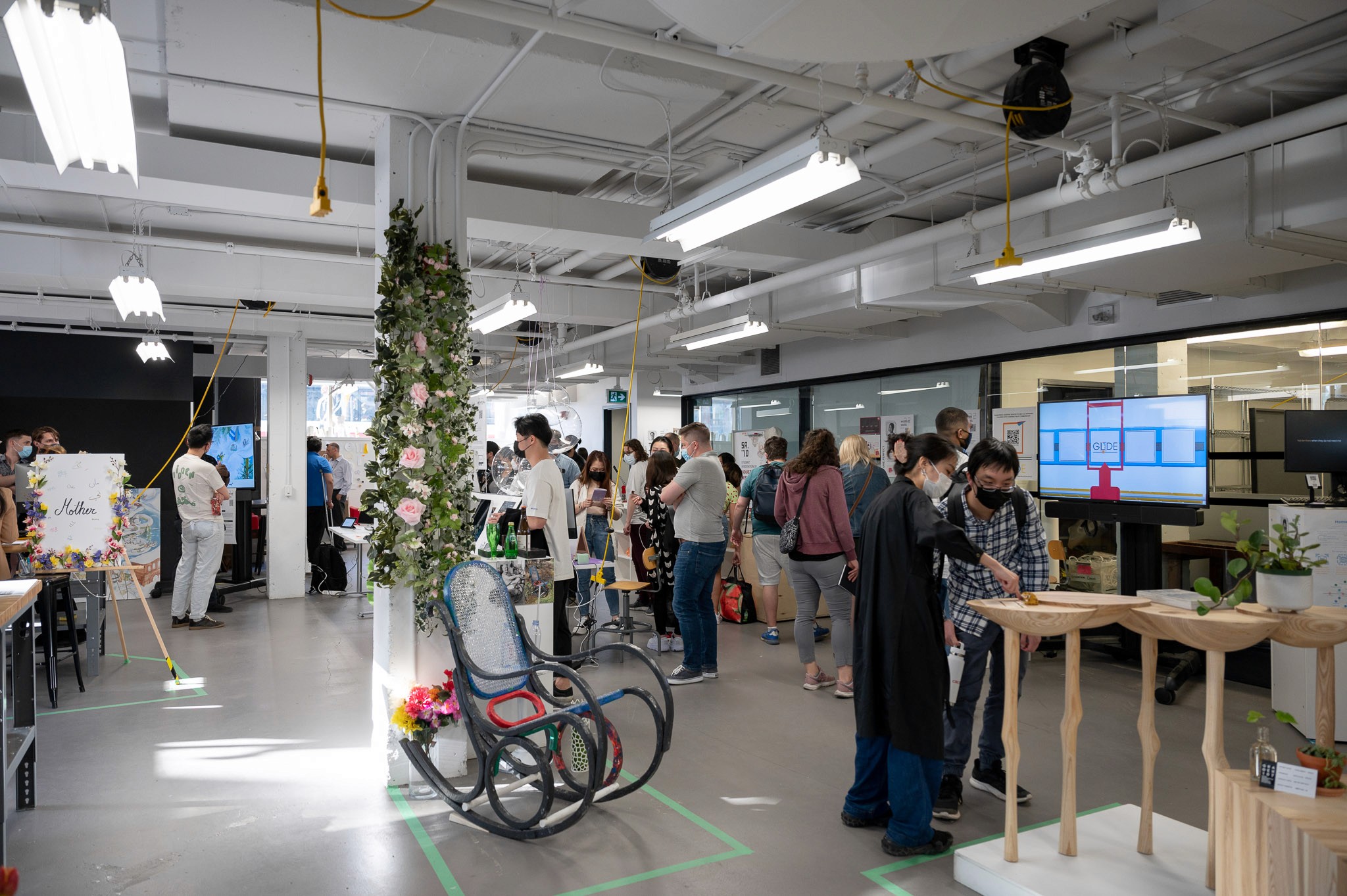 With most projects nearing completion, we had a better understanding of the type of space individuals required to best exhibit their work and adapted to meet those needs on the fly. We were able to provide dark room spaces for projects that needed visual isolation or sound isolation while still maximizing their visibility to exhibition-goers.